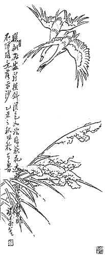 款題行文方式,由於漢字傳統書寫習慣,多是自上而下的豎寫,行間排列自右而左。“款” 比“題” 的部位略低,字也略小。所用書體,以與繪畫風格統一為宜。工筆花鳥可用楷書、行書。寫意花鳥可用行書、草書。有時少數大標題字,兼用篆、隸。序跋、落款,可用楷、行。