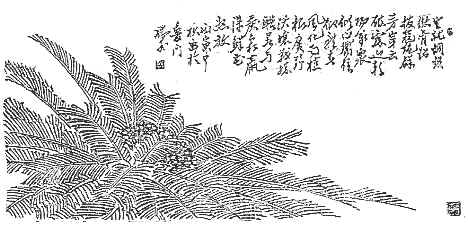 款題不單是為了填補畫面的空白,而更主要的是它可闡明題意,啟發想像, 擴大意境、意趣,增加藝術性的廣度和深度并能以書的形式美與畫面物象的賓主、虛實權衡配合,促成畫面的和諧統一。